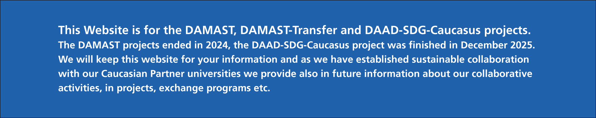 The conference will focus on recent cutting edge geoscientific and technical works undertaken in the western Caucasus within the DAMAST and DAMAST-Transfer projects (2019-2024) funded by the German Federal Ministry of Education and Research BMBF. Hydropower as renewable energy technology faces numerous challenges with respect to scientific process understanding, technical but also environmental topics.